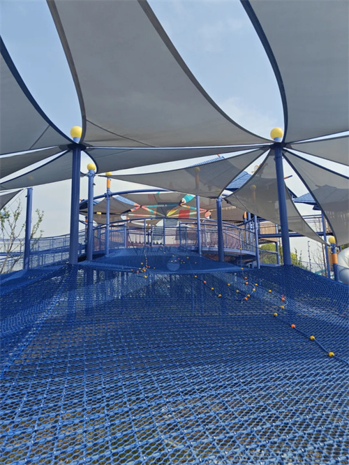 涂層賦予膜材出色的耐久性、抗紫外線能力與自潔性能。這意味著,這片彩色天幕不僅能從容應(yīng)對衢州的日曬雨淋,更能在雨水沖刷下煥然如新,為樂園的長期運營減負(fù)。