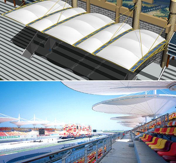 ②建筑造型自由豐富。膜結構建筑造型豐富多彩、新穎獨特,富有時代氣息,打破了傳統(tǒng)建筑形態(tài)的模式,給人耳目一新的感覺。